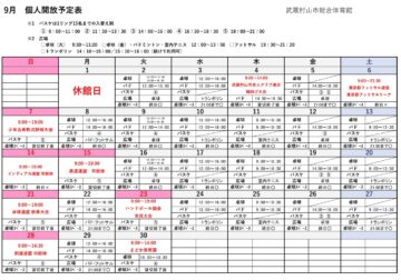 個人開放9月の予定のお知らせ